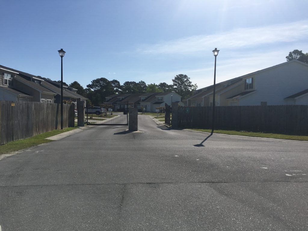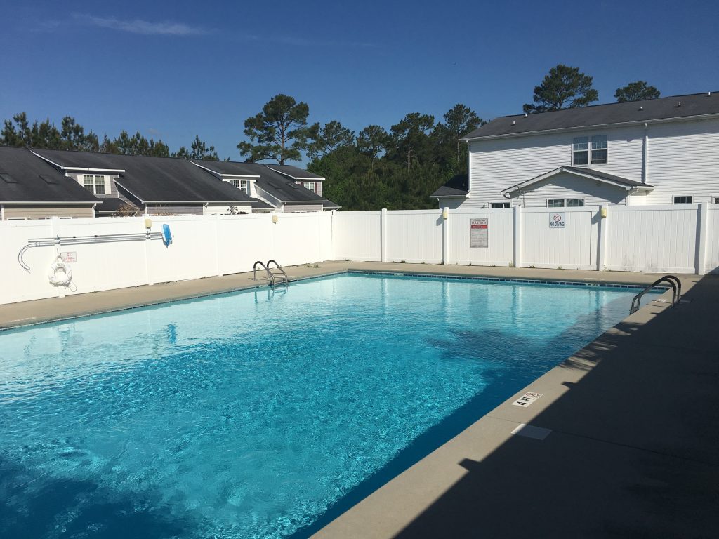 Motivated Seller!! Great Location! Close drive to area beaches, near the back gate and close to area shopping. Well-Cared for 2 story, 2 bed/2.5 bath townhouse with a fenced in yard and garage. 1st floor features a living room with cathedral ceilings and ceiling fan, a kitchen and a dining area that overlooks the fenced in yard. Kitchen features a stove, refrigerator, dishwasher, and built-in microwave over the stove. There is a half bath downstairs that also has the washer and dryer which are also included. The upstairs has 2 bedrooms with walk-in closets, en suite bathrooms and ceiling fans. Home has double pane tilt windows and a storm door. The community features a gated entrance and pool. This is a must see home.